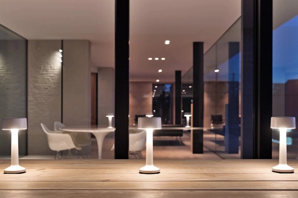 Indoor-/Outdoor-Leuchte in 6 verschiedenen Leuchtköpfen, erhältlich in vielen erdigen Farben, kann warmweiß in 2700 Kelvin leuchten. Aus tiefgebürstetem, eloxiertem oder hochglanzpoliertem Pulverbeschichtungsaluminium, kein Rosten, kein Oxidieren, keine Entfärbung, hoher UV-Schutz, Regen- und Blendschutz.