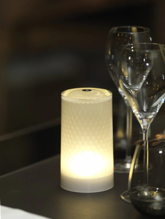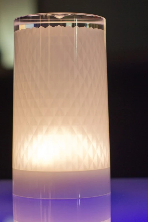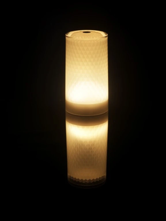 Indoor-/Outdoor-Produkt aus Acryl (PMMA) und Polycarbonat (PC), kein Rosten, keine Oxidation, keine Entfärbung, hoher UV-Schutz, blendfrei, regen- und stoßfest. Eine raffinierte Lampe mit dem Look, Touch und Feel von Glas. Diese zylinderförmige Leuchte ist perfekt verarbeitet mit Muster auf der Innenseite.