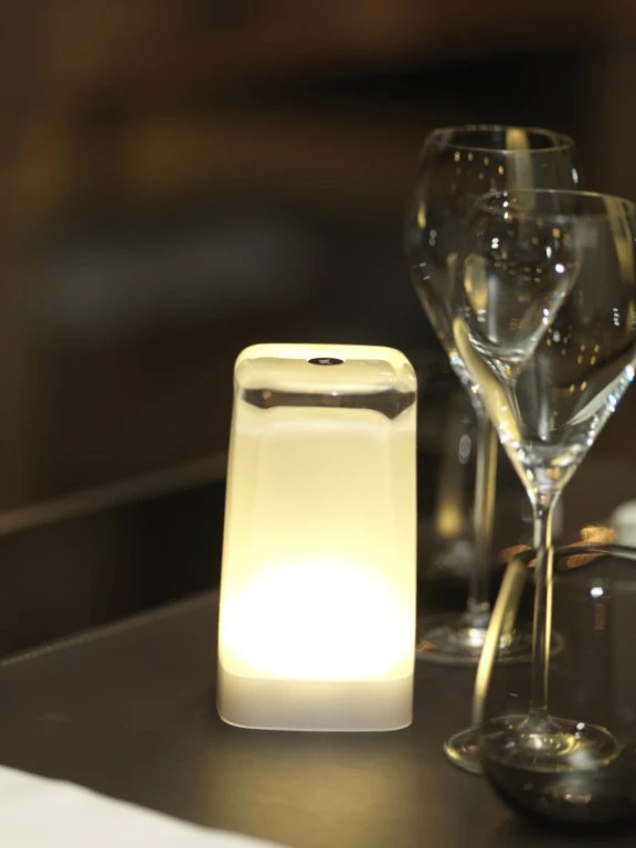 Indoor/outdoor product made of Acrylic (PMMA) and Polycarbonate (PC), no rusting, no oxidizing, no decolourizing, high UV-protection, anti- glare, rainproof and shock resistant. A refined lamp with the look, touch and feel of glass. This cubic shaped lamp is perfectly finished, like a cubic turned into ice.
