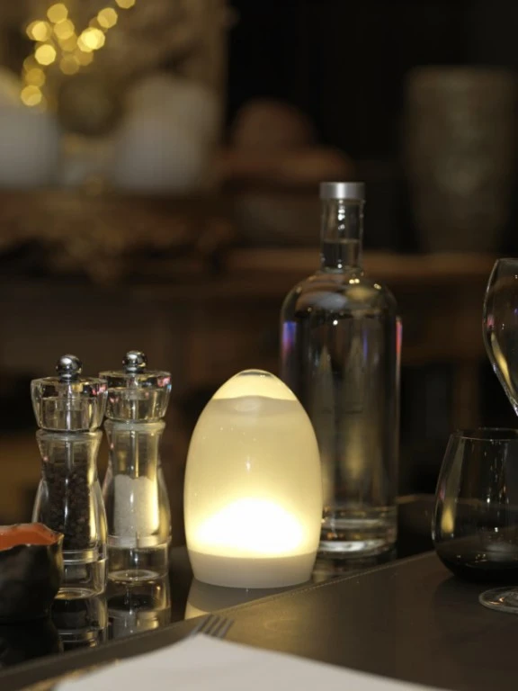 Indoor/outdoor product made of Acrylic (PMMA) and Polycarbonate (PC), no rusting, no oxidizing, no decolourizing, high UV-protection, anti- glare, rainproof and shock resistant. A refined lamp with the look, touch and feel of glass. This egg shaped lamp is perfectly finished.