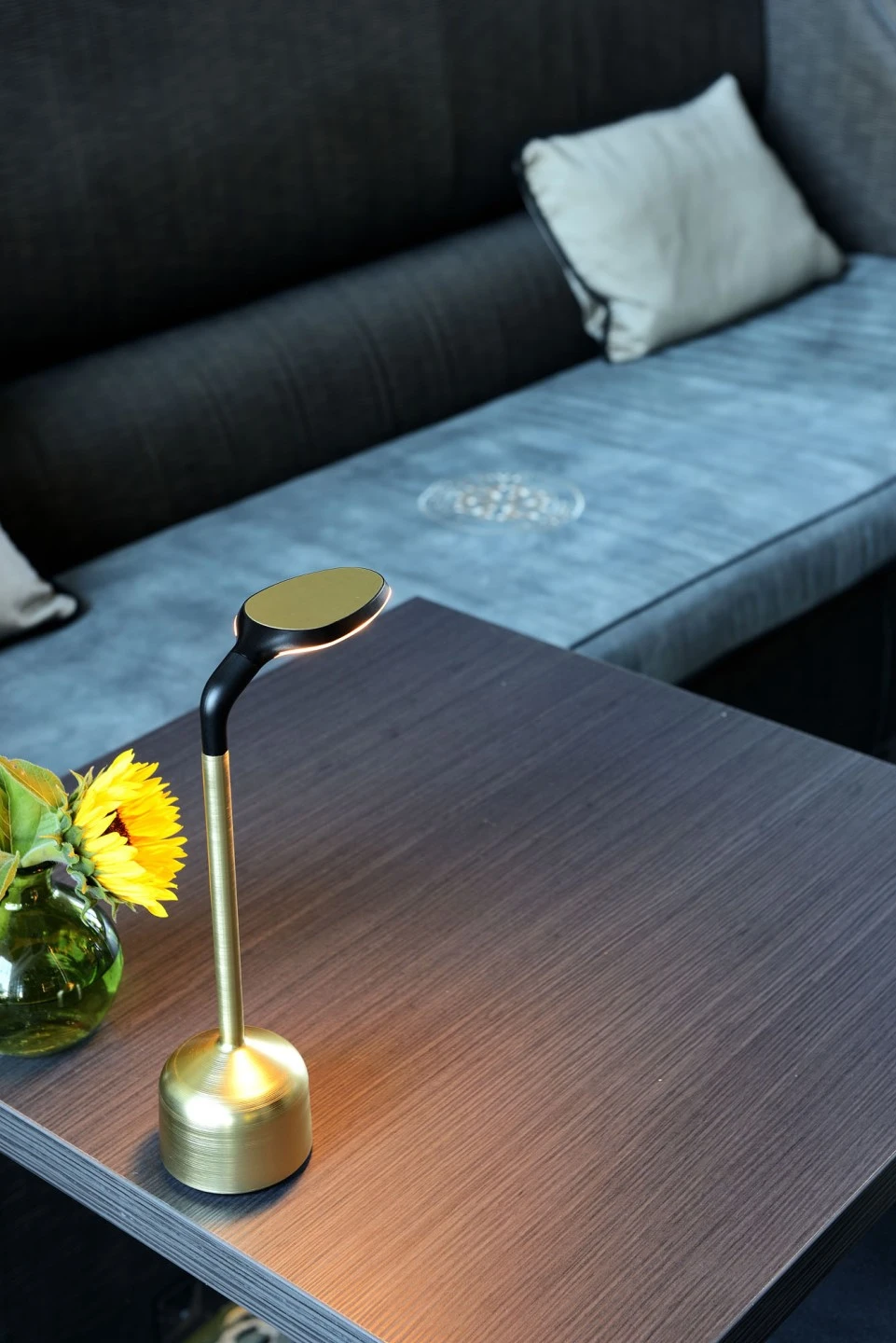 Lampe d'intérieur/d'extérieur, techniquement surnaturelle, disponible avec une seule tête d'éclairage, donnant un rendement lumineux extrême et ayant la capacité d'éclairer en blanc chaud en 2300 Kelvin et 2700 Kelvin. Un emplacement de batterie en option garantit une seule recharge par semaine.