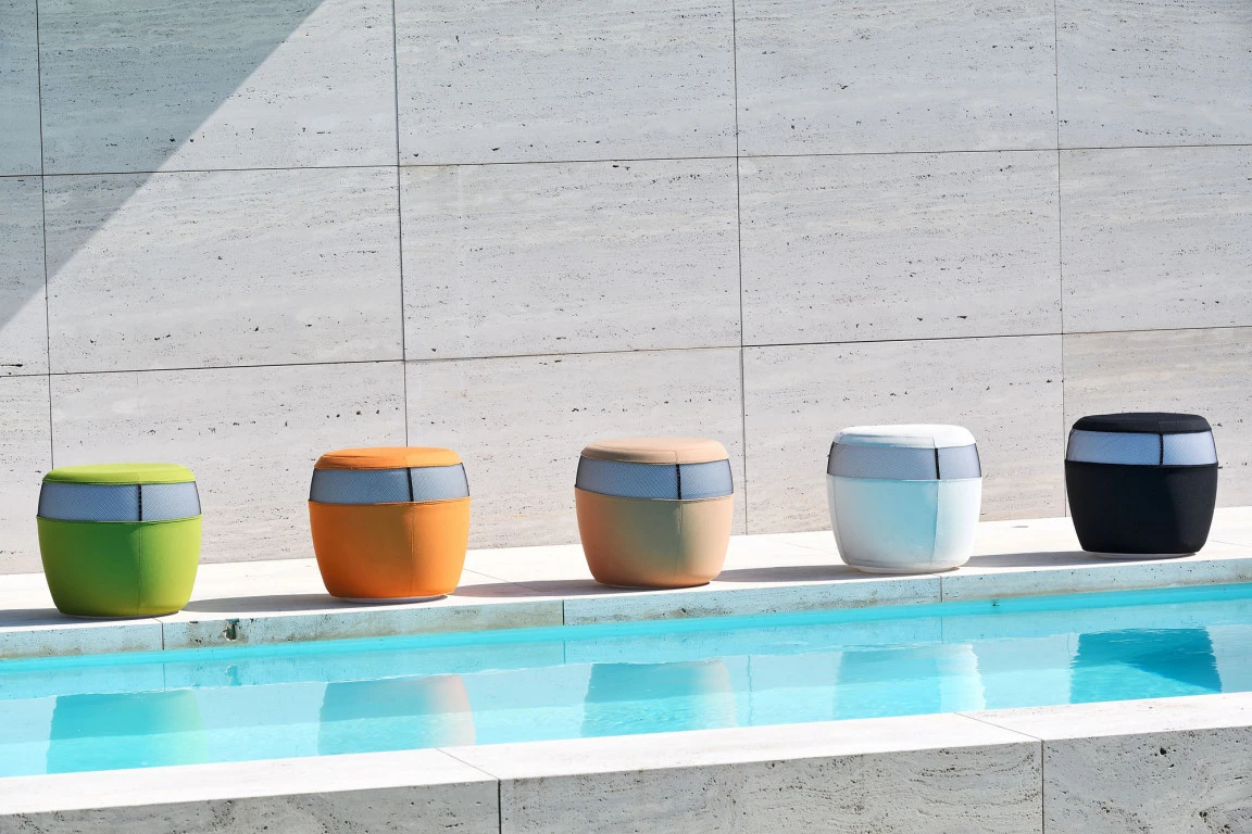 BARELO est un pouf éclairé sans fil. L’élément d’assise peut être recouvert de néoprène®, en 5 couleurs.