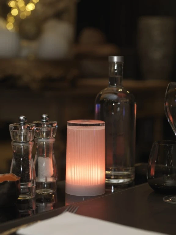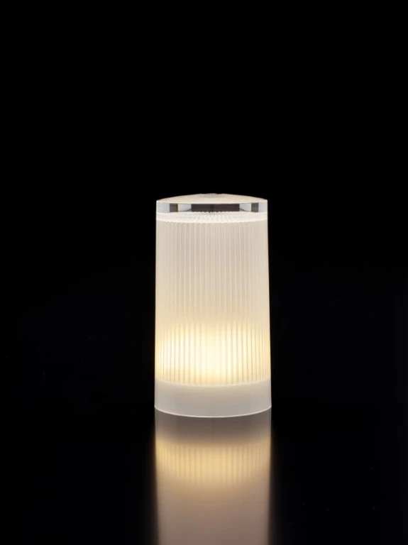Product voor binnen en buiten, gemaakt van acryl (PMMA) en polycarbonaat (PC), roestvrij, oxideert niet, kleurvast, hoge UV-bescherming, antireflectie, regenbestendig, schokbestendig. Een verfijnde lamp met de look, touch en feel van glas. Deze cilindervormige lamp is perfect afgewerkt en versierd met een lijnmotief op de binnenzijde.